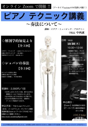 【オンラインZoomで開催!ピアノテクニック講義〜奏法について〜】※アーカイブのみの受講も可能