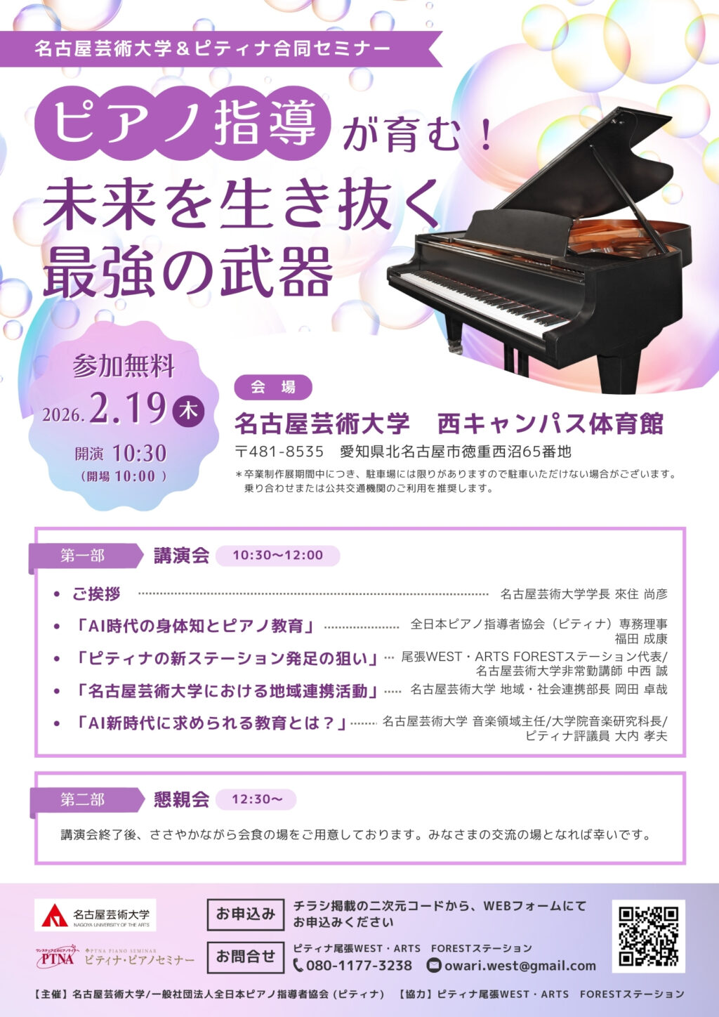 名古屋芸術大学來住学長、ピティナの福田専務理事の講演等もあります。
